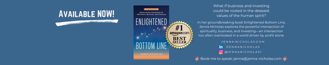 In her groundbreaking and bestselling book, Enlightened Bottom Line, Jenna Nicholas explores the powerful intersection of spirituality, business, and investing—an intersection too often overlooked in a world driven by profit alone. Drawing on moving stories of entrepreneurs, investors, and leaders who are living out this integration, along with cutting-edge research, Nicholas reveals how spiritual wisdom can guide ethical choices in finance and business.
